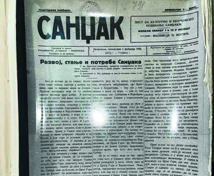 Daleke 1932. godine, 1. februara u Prijepolju, objavljen je prvi broj lista Sandžak. Osnivanje lista označilo je početak ozbiljne žurnalistike u Sandžaku. Inicijativu za pokretanje dala je multietnička grupa naprednih sandžačkih intelektualaca, među kojima su bili sociolog Sreten Vukosavljević, te intelektualci i studenti: Rifat Burdžović, Milivoje Žugić, Tomaš Žižić, Mirko Tomić i Murat-ef. Šećeragić. Bili su antifašistički orijentirani, a na Beogradskom univerzitetu će osuditi pojavu Hitlerovog fašizma, te kasnije biti opredijeljeni za NOP i revoluciju. Prilikom utemeljenja lista Sandžak u zaglavlju novina pisalo je da je ovo glasilo za kulturno i ekonomsko podizanje Sandžaka.